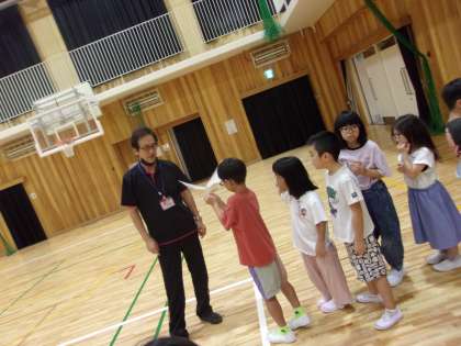 ゴムの力を使った2種類の飛行機。ゴムを巻いてから投げると、結構飛ぶこともありました。順番を守って、楽しく飛行機を投げて飛ばすことができました。