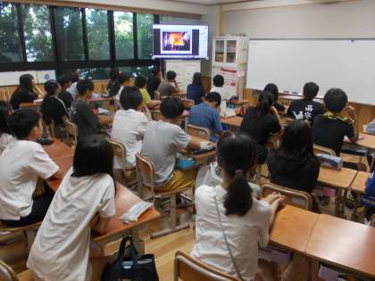 まず校長先生から、今年度やこれまでに全国各地で起きた台風による災害のお話がありました。その後、過去に起こった室戸台風による災害のお話がありました。