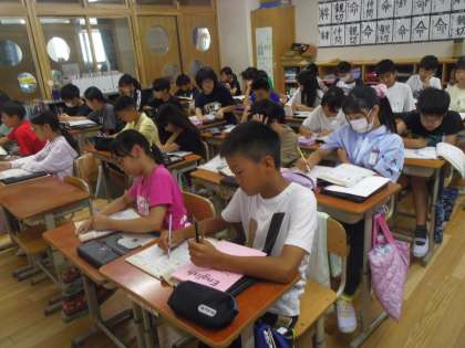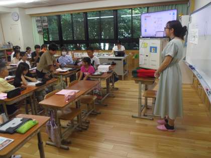 次にSound and LettersでXの発音を学習しました。今日はALTの先生が来ているのでALTの先生の後に続いて発音をして、X音で終わる音声を聞き取りました。
