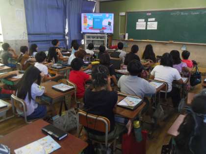 はじめに歌で文房具の言い方を練習しました。
