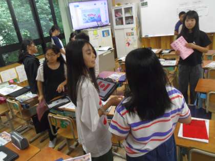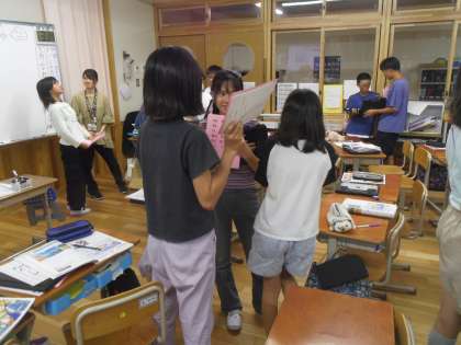 後半にはペアトークをしました。行きたい国についてくわしく紹介しあっていました。