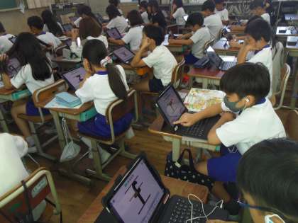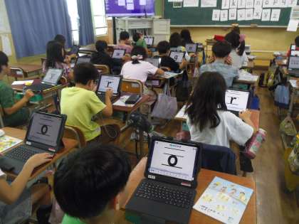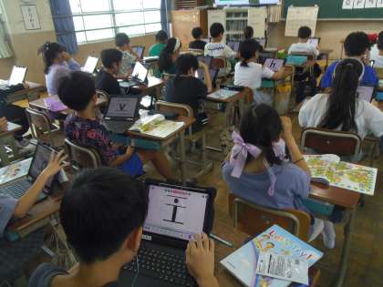 次にロイロノートの音声付カードで小文字の言い方に慣れ親しみました。
