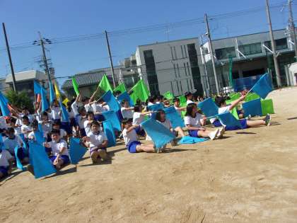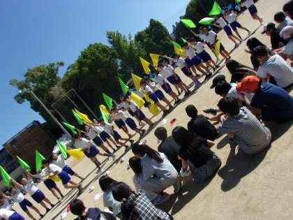 今回は2、4、5年生、矢車学級が見に来てくれました。スポーツフェスティバル当日に直接見に来られない学年です。6年生の演技に見に来た子どもたちからは