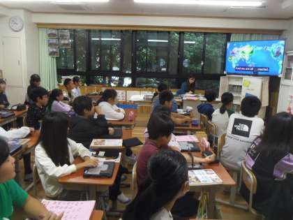 Unit5の4時間目の授業をしました。はじめの歌も歌える子どもが増えてきています。