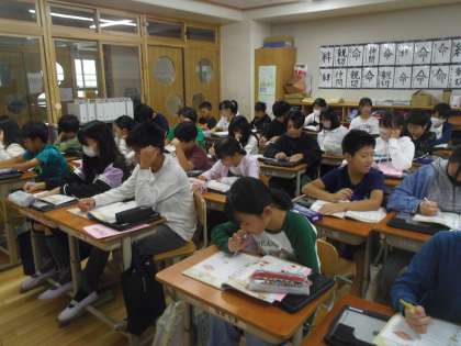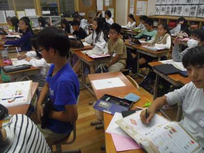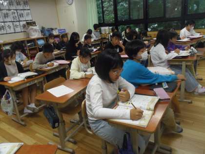 次にSounds and Lettersを学習しまた。音声を聞いて単語の真ん中の音を聞き取り教科書に書きこみました。