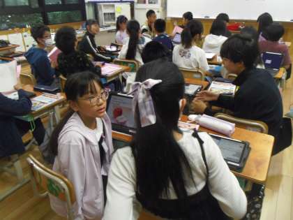 授業の後半にはペアトークをしました。食材がどこからきているかについてペアでつたえあいました。