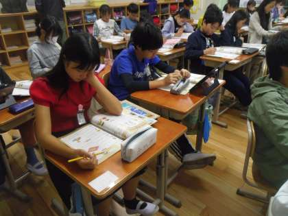 次にSounds and Lettersを学習しました。聞こえた音声のアルファベットにまるを付けました。