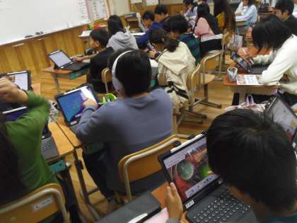 次に各自のギガ端末を使って食材がどの国からきているかを調べたり、このユニットで学習している表現の練習をしたりしました。