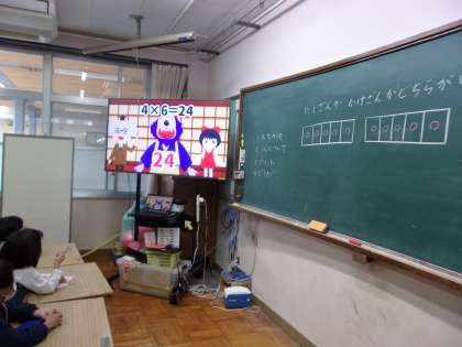 4チームに分かれて、九九や速さ、掛け算などの学習をしています。みんなで力を合わせて学習をすることができています。