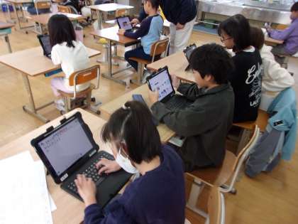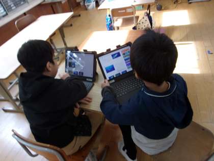 11日(火)、矢車学級ではロイロノートを使い、京都水族館で見た生き物の中で、自分が調べたい生き物についてまとめています。