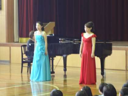美しい響きと声の音量に圧倒されて,子どもたちは身を乗り出しても聞き入っていました。