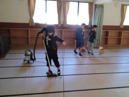 朝食後は、所内を「来た時よりも美しく」するために、自分たちが使った場所を掃除しました。退所式では最後に所長さんのオカリナ伴奏で「今日の日はさよなら」をみんなで歌いました。