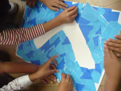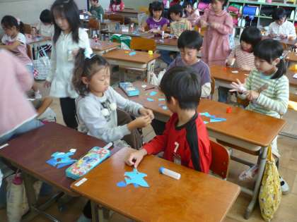 運動会に向けて学年の準備や練習はもちろん,学校全体の取り組みにもがんばっています。今年の運動会のスローガンを各クラスで作っています。折り紙のちぎったものを張り合わせて,一クラス一文字を完成させていっています。運動会の日に飾られているスローガンもぜひ見てくださいね。