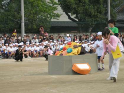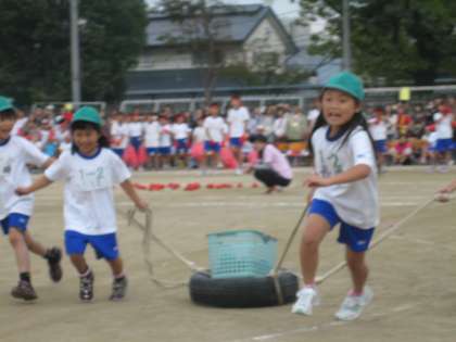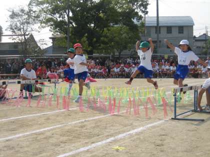 障害走「とんで,はこんで,ゴー!ゴー!ゴー!!」では,数々の難関をとっぱし,みんながゴールすることができました。