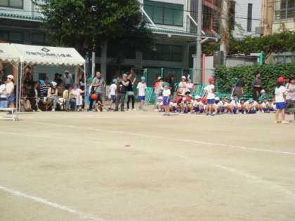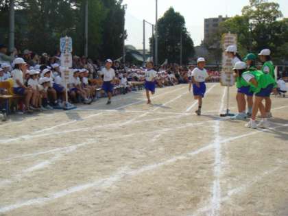 今年は80メートルを走ります。練習の時には距離が長くなった分息切れしている様子の子どももいましたが,少しずつ慣れてきました。ゴールをめざして力いっぱい走りぬけました。