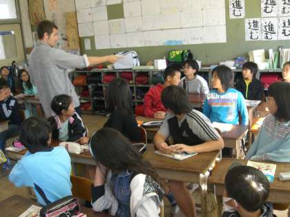 帰ってきた「ボン・チク・ボンボン!」英語活動のリアム先生が帰ってきました。子どもたちは大はしゃぎ!ボンチクボンボンは,リアム先生の専売特許!楽しい授業でしたが,この絵はないでしょう・・・?!