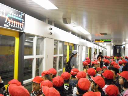 子どもたちは、小さな忍者になって、地下鉄に乗りました。