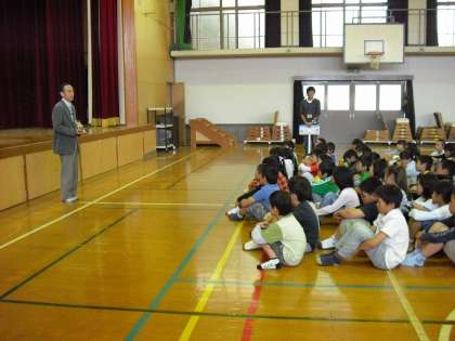 10月21日(水)、球根贈呈式を行いました。人権擁護委員の方が来校され、子どもたちに球根を渡して下さいました。これは、水仙の球根で、水仙は京都府の花だそうです。子どもたちは、「早く育てたいね。」「きれいな花が咲くかな?」と意欲満々の様子でした。これからが楽しみですね。