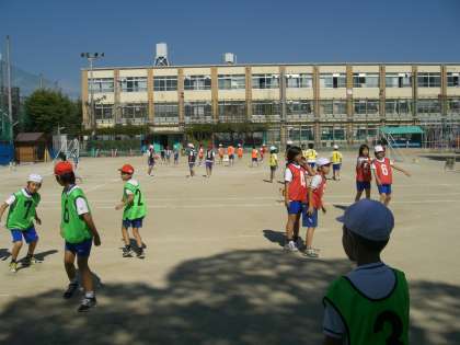 今週の体育からはハンドボールをしています。パス回しからシュートまでいろいろ練習しました。中にはもうすでに相手チームの動きを読んで、動いている人もありました。これからが楽しみですね。