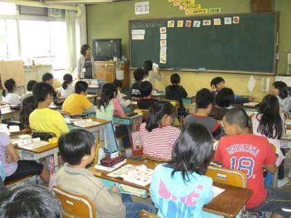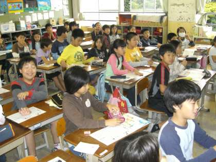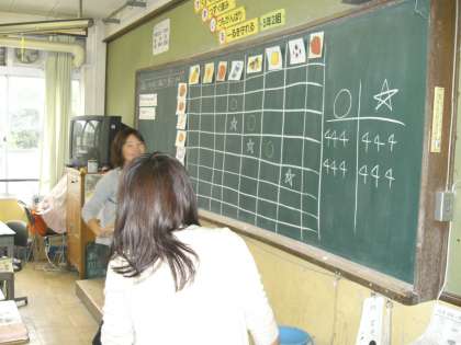 今日の英語の授業は,山口県から来られた先生が参観される中で行われました。いつもよりはしっとりと,でも元気よく発音して授業をしていました。今日のゲーム「ゲット4」は,とても頭を使う楽しいゲームでした。