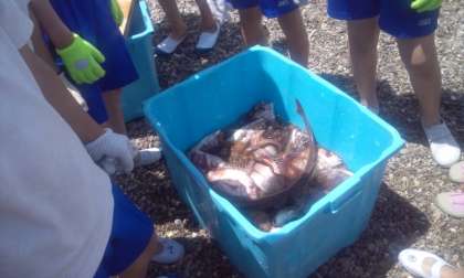 地引網体験をしています。