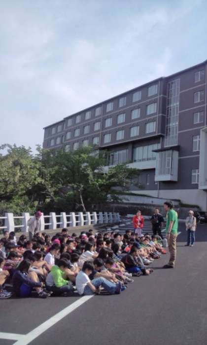 宿舎に着いて,まず避難訓練をしました。