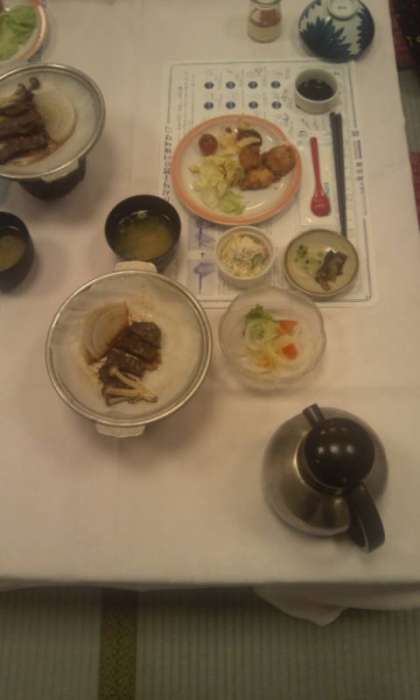 入浴も終わり,いよいよ美味しい夕食です。