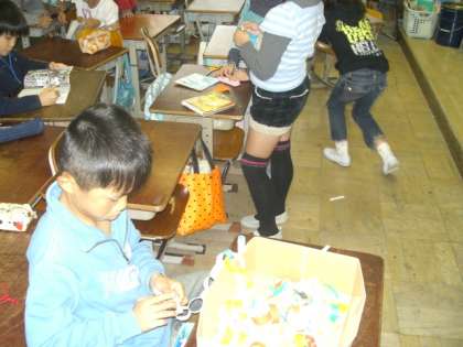 あるクラスでは,遊び係さんが企画したみんな遊びを楽しんでいました。他のクラスでは,この日ばかりはと読書をしたり,まいちゃれんじの活動の続きをしたり,それぞれに工夫して過ごしていました。