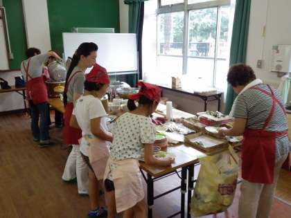 ぬくもり委員会の児童は,始まる前からプレゼントを作っていました。また,地域の方に調理していただき,協力して配ぜんの準備もしていました。11時に始まると,とぎれることなくたくさんの方が来られました。