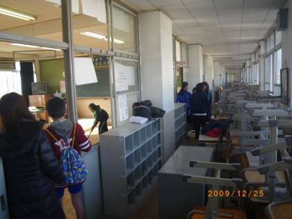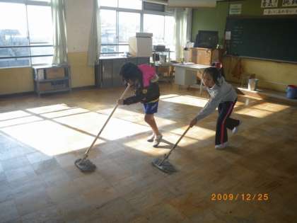 年内の授業が12月24日で終わったため,25日の午前中に6年生の教室のワックスがけを行いました。