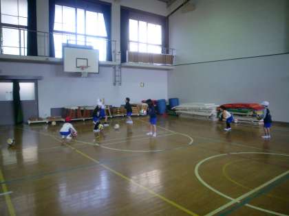 ボール、カラーバー(棒)、フラフープ(輪)を使ってしました。