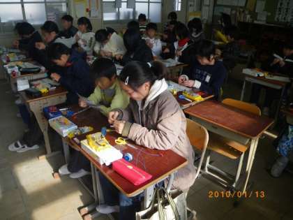 今週は電磁石の実験に向けて,各自が実験キットのスイッチやコイルを作っています。