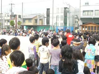 西院小学校の1年生から6年生が運動場に集まり,じゃんけんゲームなどのゲームを楽しみました。