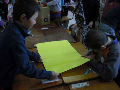 4年生のみんなもそれぞれのクラスをのぞいてみるとがんばって準備をしていました。