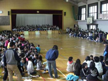 最後に児童会からの出し物の○×クイズです。みんな6年生に関するクイズを必死で考えて答えていました。