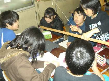 ふりこの実験です。一往復の時間をおもりの重さやふれ幅を変えて実験しました。結果はいかに・・・。