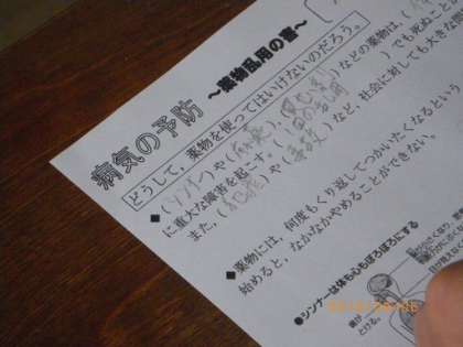 6年生は,保健体育の授業で「薬物乱用の害」についての学習をしました。先日も有名ボーカリストが「覚せい剤取締法違反」で逮捕される事件がありました。薬物乱用は年々低年齢化していると言われており,間もなく中学生になる6年生にとっても,テレビの中だけの出来事とは言えない状況です。薬物に関する正しい知識は,今後,子ども達に絶対必要な知識だと言えると思います。