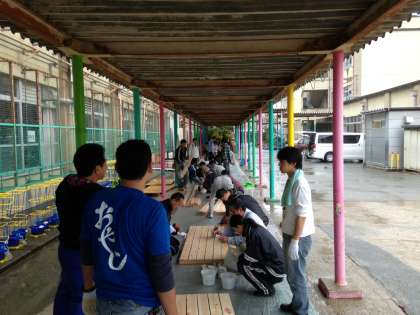 学校ふれあい事業 ランドセル置き場・プランター置き場作り(おやじの会) その1