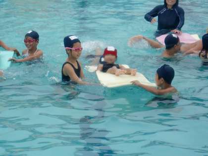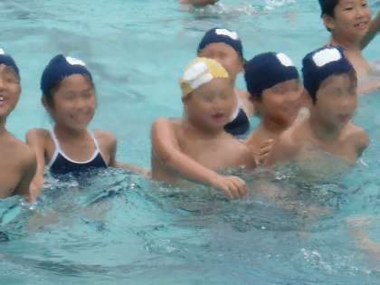 「やぐるまとなかよくなる会」が終わって, 今度は3年生から「プールで一緒に遊ぼう」と招待状が届きました。楽しみにしていた今日,お天気が心配だったけど入ることができました。まず, 大勢でぐるぐる回る洗たく機からです。矢車だけでは絶対できない楽しいことなので, みんな水の流れに乗ってにっこにこ。ジャンケン列車は,水の中でジャンケンです。どんどんつながって一つになりました。続いて, ビート板リレーでは, 一人ずつ乗せてもらって運んでもらいました。気持ちいい〜! 最後は波乗りです。みんなで手をつないで, 行ったり来たり…。波がやってきたー! ザブーンッ! 楽しくてたまりません。あっという間に時間が来てしまいました。もっと入りたかったなあ。3年生のみなさん, ありがとう!!