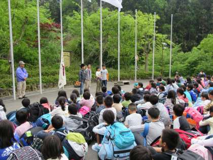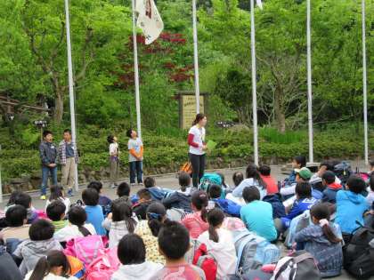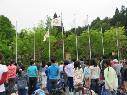 入所式を行い,いよいよ山の家での活動が始まりました。