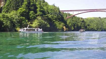 船内のアナウンスを聞きながら,景色を見て,ジェット船でのクルージングを楽しみました。