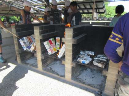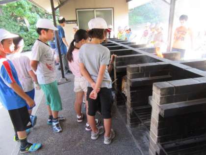 子どもたちは、どんな仕上がりになるのか、心配そうにかまどを見ています。