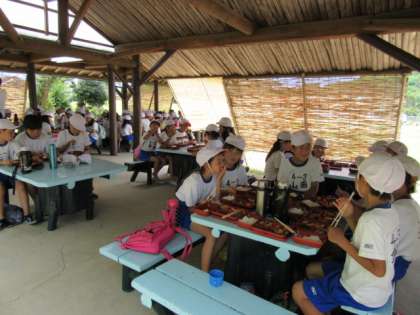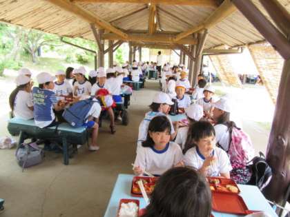 昼食は、あずまやでお弁当を食べました。
