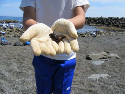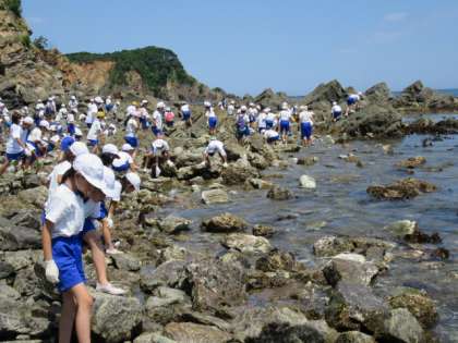子どもたちは,潮溜まりにいる様々な生物を見つけ,大喜びでした。