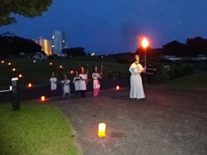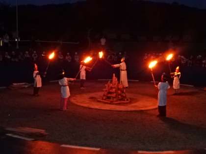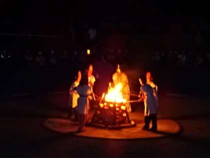 キャンプファイヤーでは、みさきの家の守り神「ビジョーノ オリヒメーノ」が、「挑戦」「友情」「努力」「協力」「感謝」の5つの聖なる火を授けてくれました。