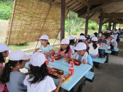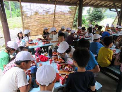 朝食は、パンです。子どもたちは、みさきの家での最後の食事を楽しんでいます。