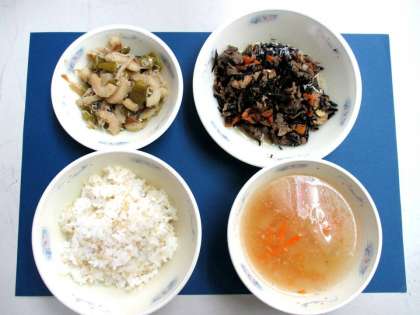 なごみ献立では牛乳がつきません。その分,汁の量がいつもより多くなっています。