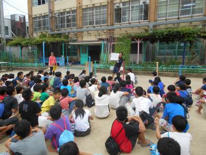 学習の中で,子どもたちは,もしも水難事故に遭った際はどう対処すればよいのかを考え,「肺に空気を入れるとよいのではないかな」