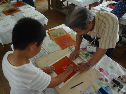 前回は,2組,3組,5組の児童が体験を行いましたが,今回は1組と4組の児童が,「和らいふ」の方々に教わりました。