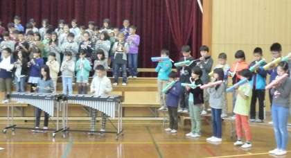 子どもたちは,毎日「ワールドミュージックツアー」の練習に励んでいます。今日は,体育館で大きい楽器も使って,合奏をしました。響きもリズムもよく,練習の成果が出てきています。合唱のハーモニーもずいぶん美しくなってきています。